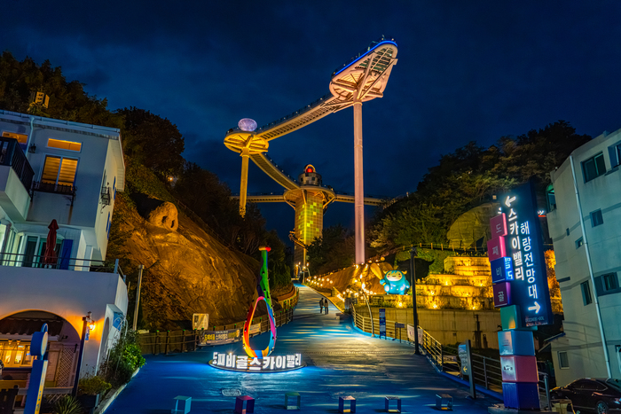 논골담길 옆의 '도째비골 스카이밸리'는 묵호의 또 다른 인기 명소다. 해발 59m 스카이워크를 중심으로 스카이사이클, 자이언트 슬라이드 등 체험형 액티비티가 마련되어 있다. 길 건너의 해랑전망대에서는 바다 위를 걷는 기분을 만끽할 수 있다.