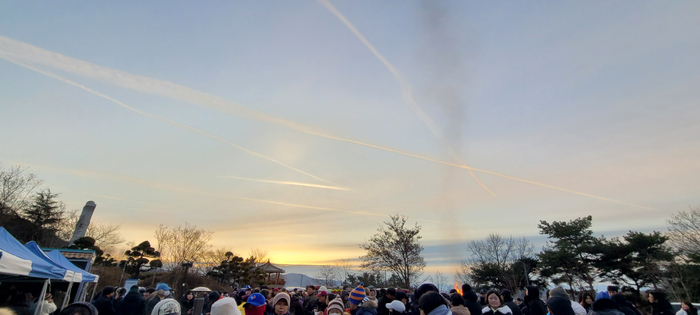 오가는 이들에게 빚이라도 진 듯, 꼭두새벽부터 나와서 섬기는 손길들이 분주하다. 몸으로 봉사하는 민간단체로 파란색 새마을 부녀회와 지도자, 노랑 적십자봉사회, 100세건강위원회, 주민자치회, 이장단, 자율방범대, 의용소방대, 두레풍물전승보존회 등이 눈에 띈다. 기관으로는 노성면사무소와 한유진, 그리고 노성농협. 노성산 해맞이 행사는 새천년 시작인 2000년 노성농협에서 시작했다가 2009년부터는 번영회에서 바통을 받았다. 새벽을 깨운 이들의 행보에 기자는 염치 없게도 말띠 주마가편을 하였다. “회장님, 오늘 너무너무 애쓰셨고 다 좋은데 2% 아쉬움이 있네요. 불은 지금 나무팔레트도 좋지만, 내년부터는 노성산 나무 장작불이면 좋겠어요!” 떡국 거저 먹은 입장에서 과욕이라는 생각이 들면서 오버랩되는 시가 있다. <그 위에 더 무엇을 바라시겠습니까?> “첫 구절은 신의 선물이다”고 말한 프랑스 시인 폴 발레리와 달리 “신의 선물은 마지막 구절이다”고 갈파하는 시인, 나태주의 시 “새해 인사” 끝 구절.