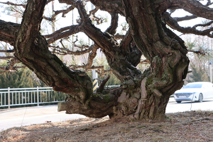 시내에서 문학관으로 들어오는 이들은 둘로 갈린다. 우향우하여 건양대 운동장으로 내려가는 운동파, 좌향좌하여 반야산 오르는 걷기파. 그 분기점에서 사람 구경하는 좌우 두 나무는 사방으로 펼쳐진 반송(盤松)이다. “제 키높이에 맞춘 겁니다.” 작은 거인 김홍신 작가의 유머가 터지는 좌측 소나무는, 남상원 회장이 반년에 걸쳐 수소문하여 찾아낸 명품 찌들목이다. 찌들목은 금수저 환경에서 자란 미인송에 비할 때 찌들듯 고생하며 자랐기에 붙여진 이름이다. 위로 크지 못한 대신 껍질이 두껍고 줄기가 굵다. 그 덕분에 예술적 가치가 높다.