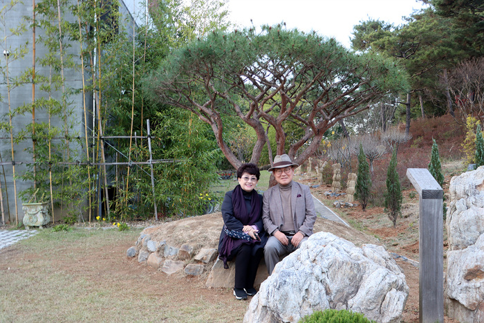 ▲ 인연의 상징으로, 작가의 숨결과 나무의 결이 만난 자리에 심은 반송 ©